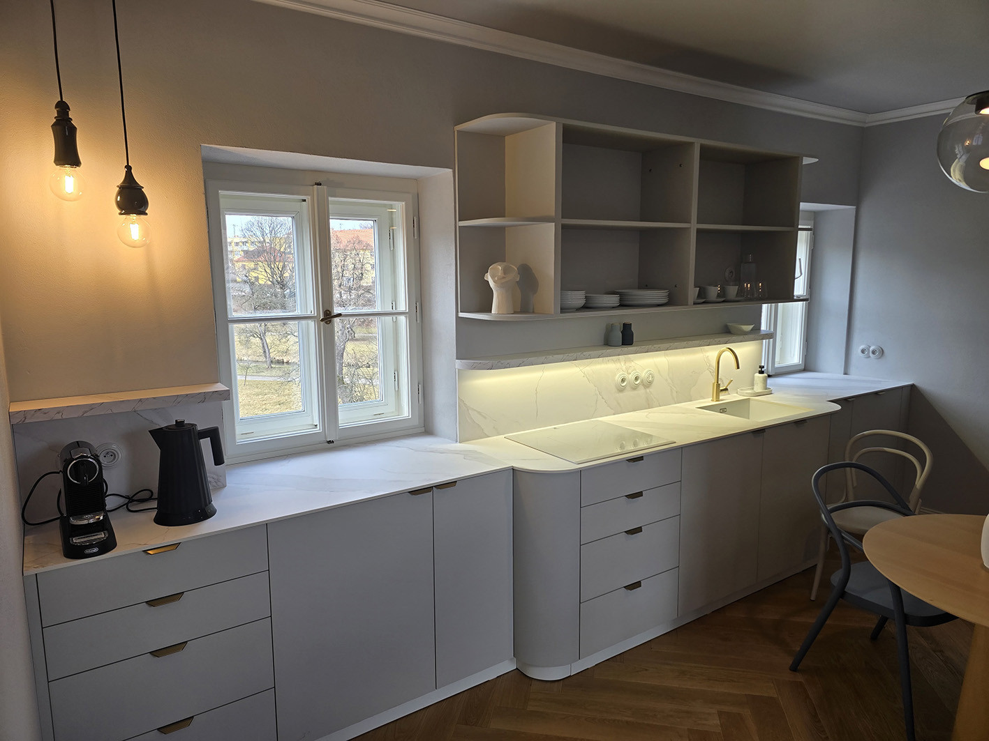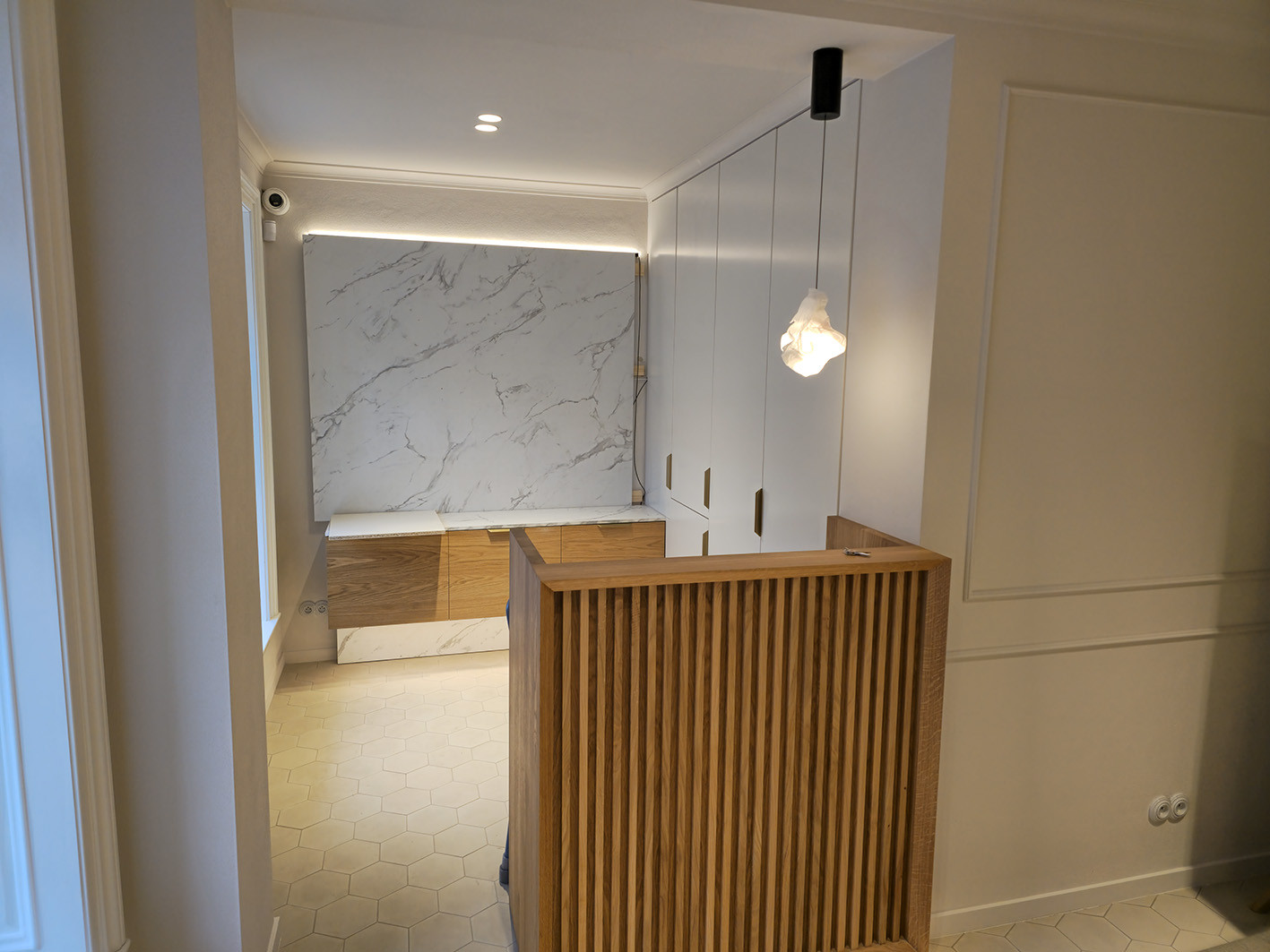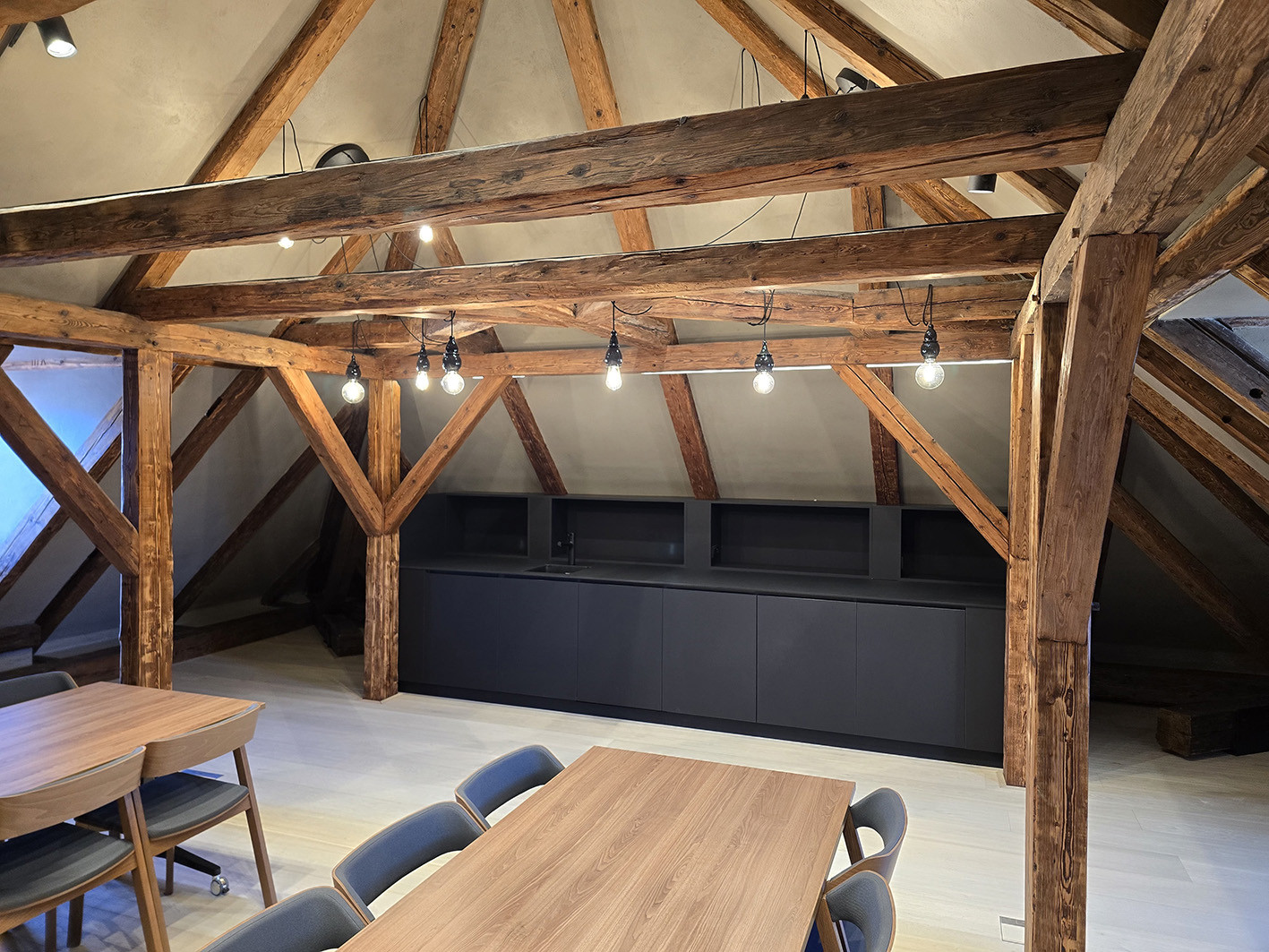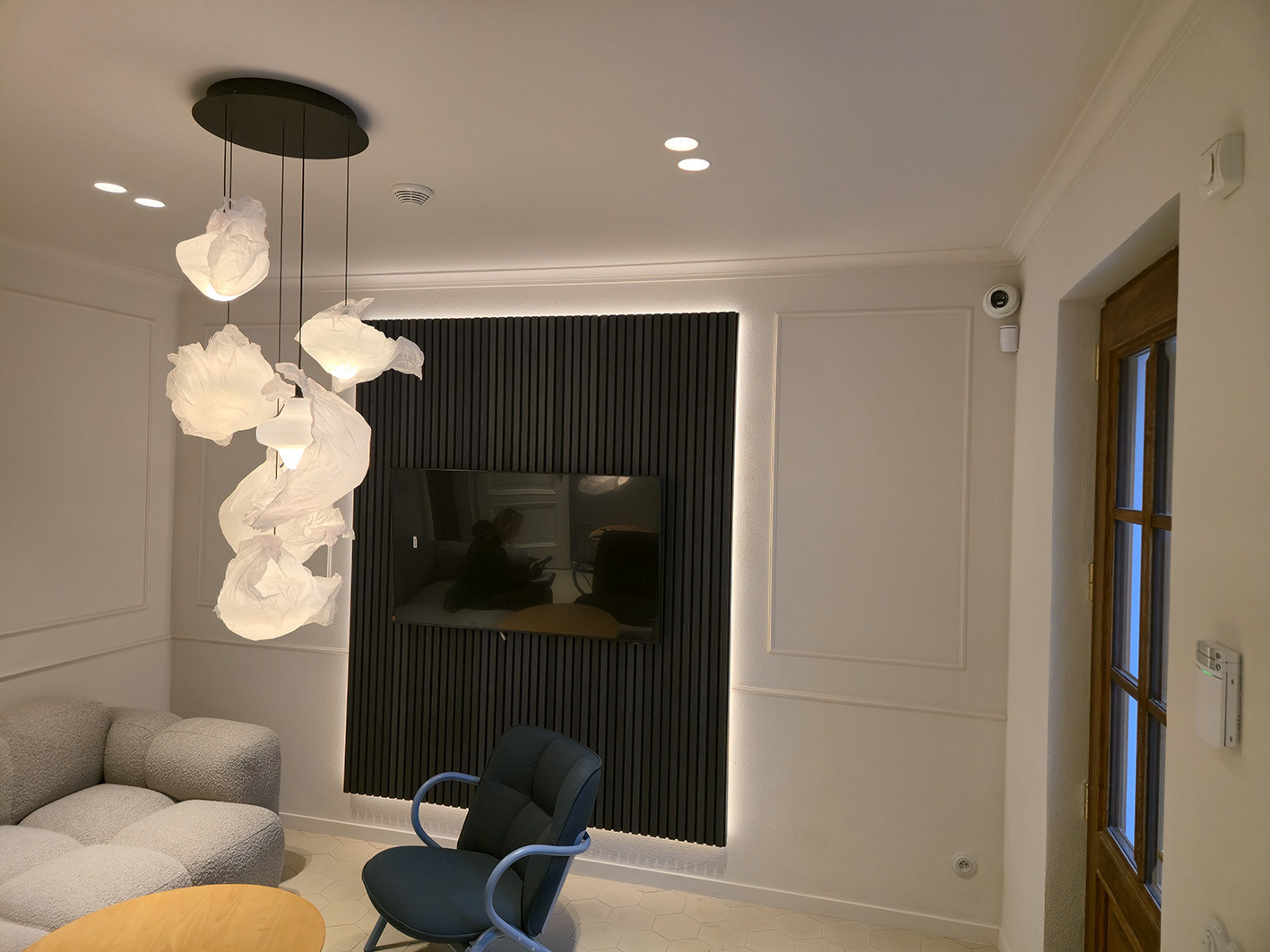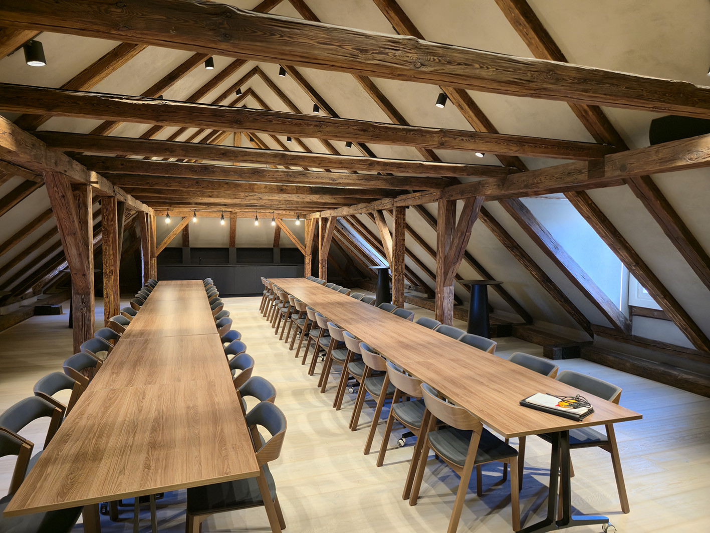 Použitý chytrý systém řízení světel Dali, zabezpečení objektu Jablotron, kamerový systém, a rezervační hotelový systém. Designové a atypické provedení.